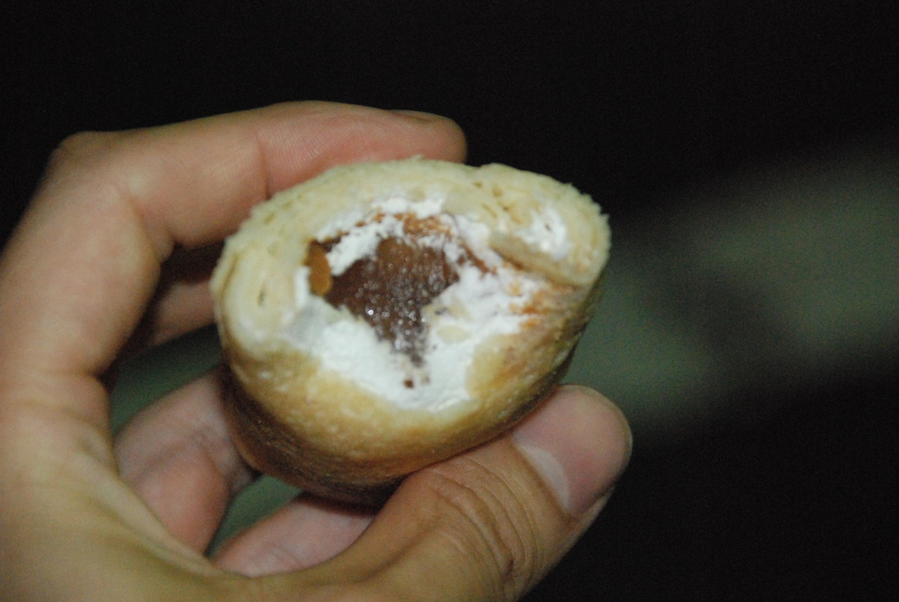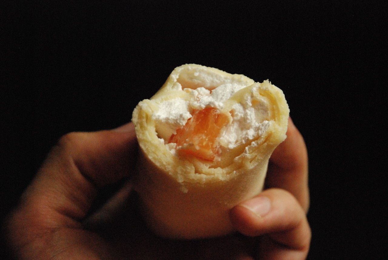 中に入ったプリンが入ったクレープ。