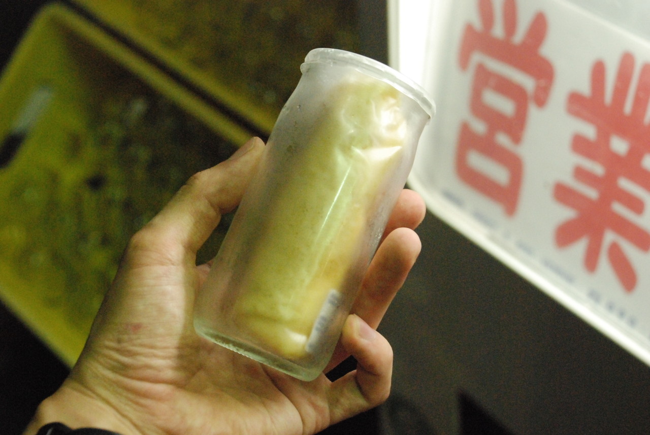 鹿児島のクレープ自販機と同様に、ビンに入った状態で出てくる。