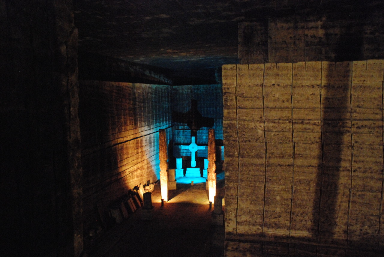 地下約70mまで下っていく。駅のホームは非常に神秘的だった。