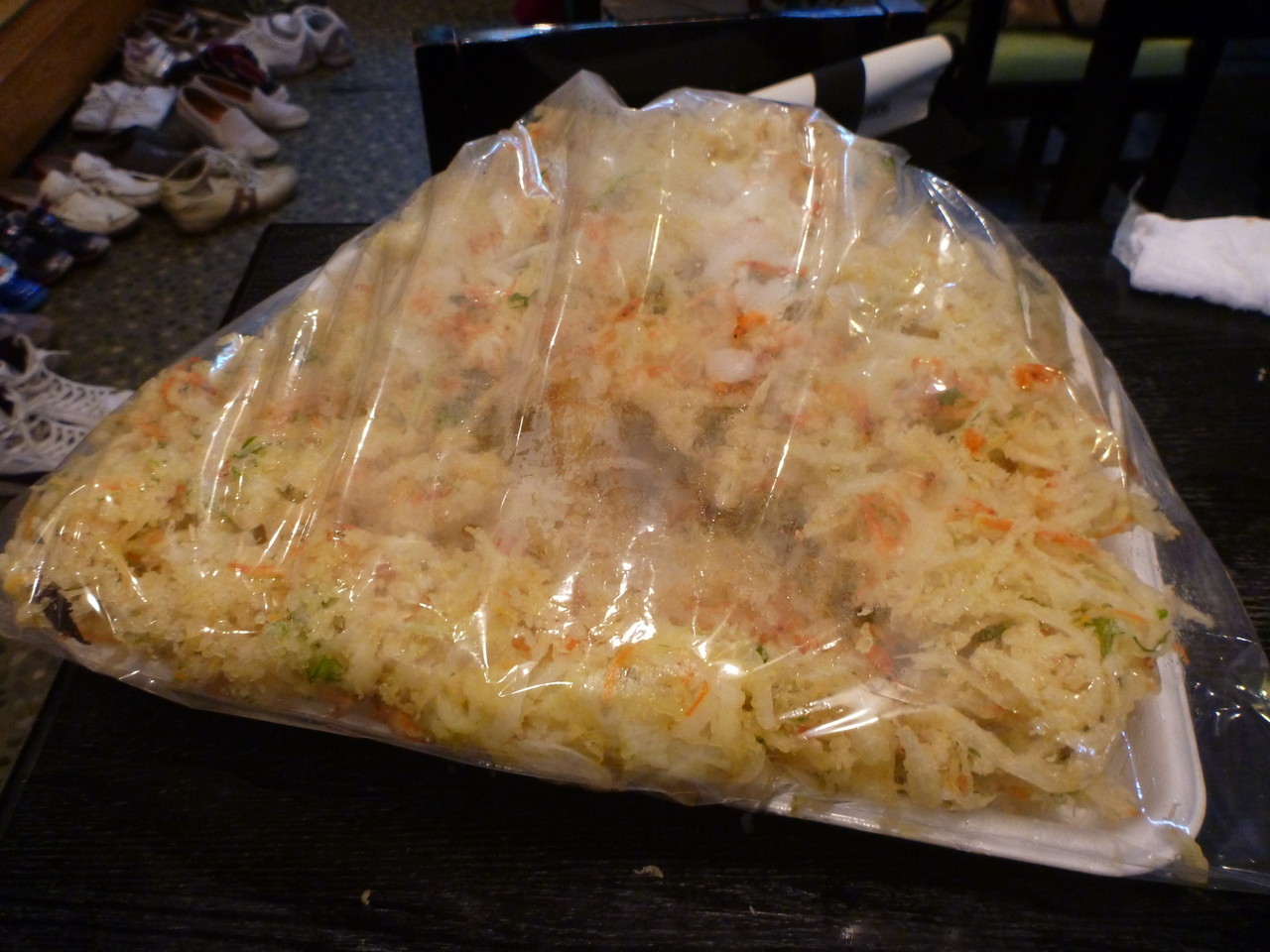 高さ10cmほど。お皿の上に立つほどのデカ盛りかき揚げを食べた!
