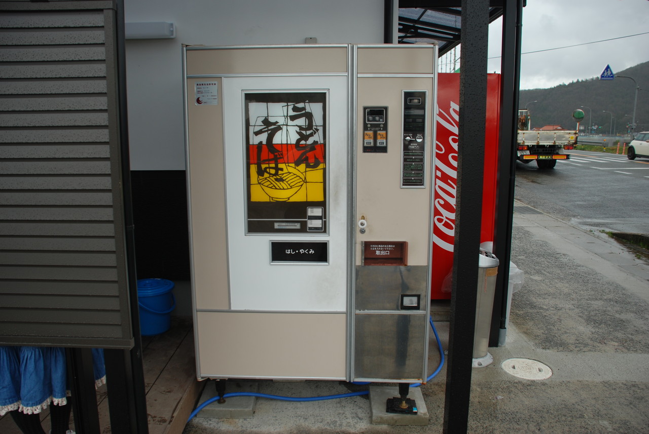 お弁当屋さんの外にはうどんの自販機があった。天ぷらうどんの味とは?