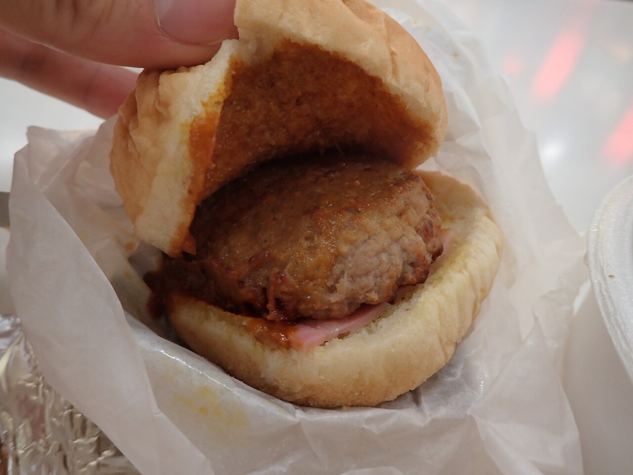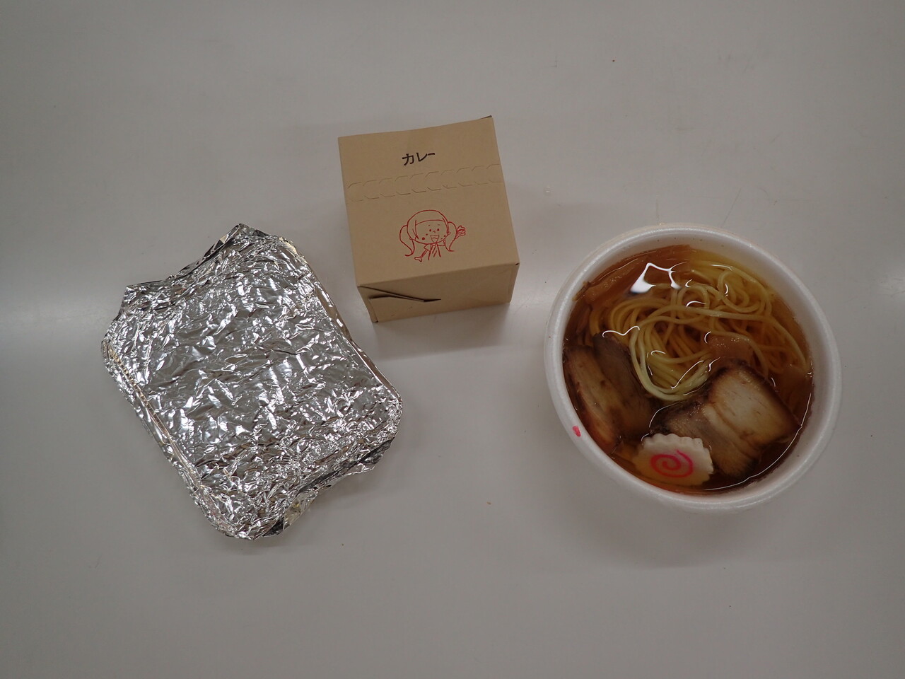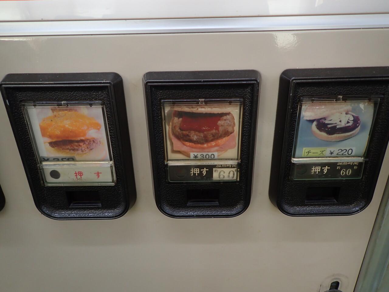寒い冬の深夜、自販機のハンバーガーとそばを食べました。