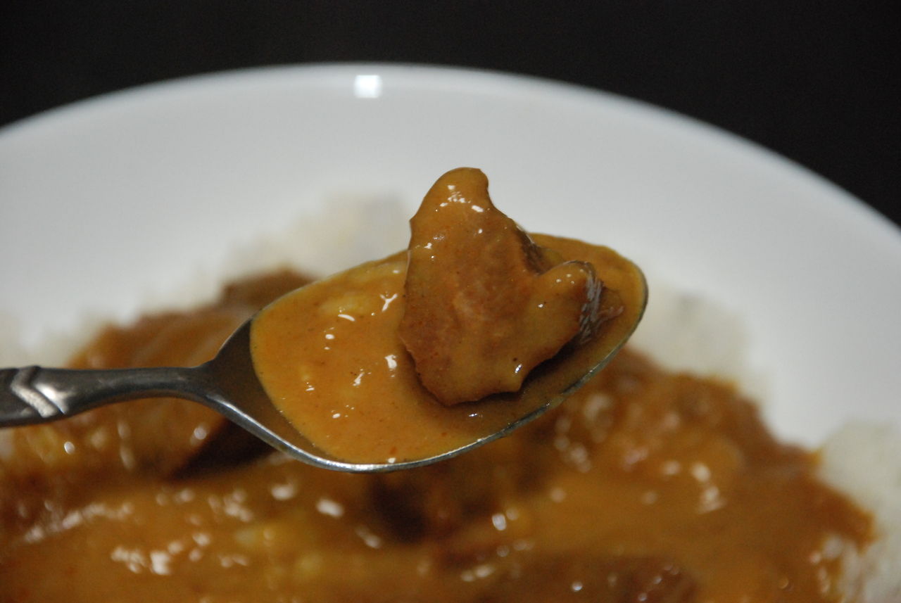 ホタテにカレーが染みてます