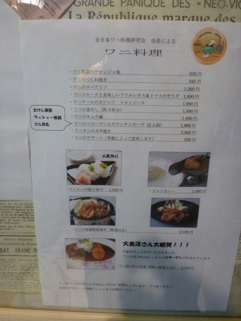 太田の居酒屋「不思議(はてな)」でワニ肉、カンガルー肉を食べた!(15/11/11)