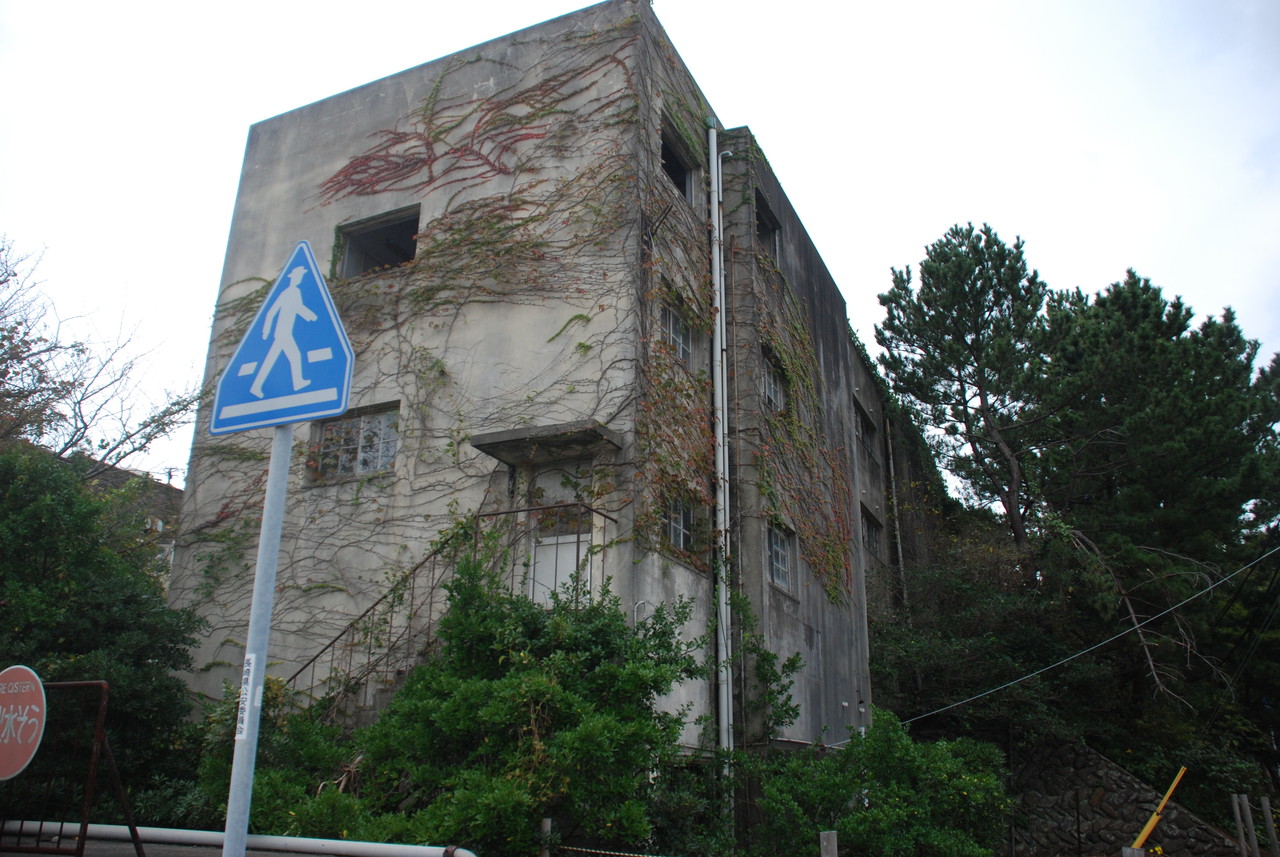 軍艦島が狭い島にアパートが密集していたのに対して、池島は比較的広い土地がある。