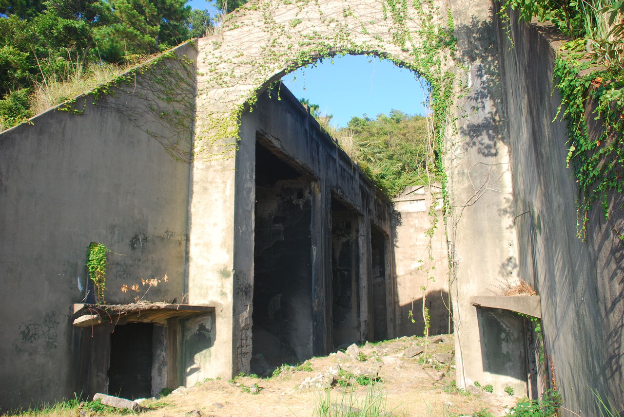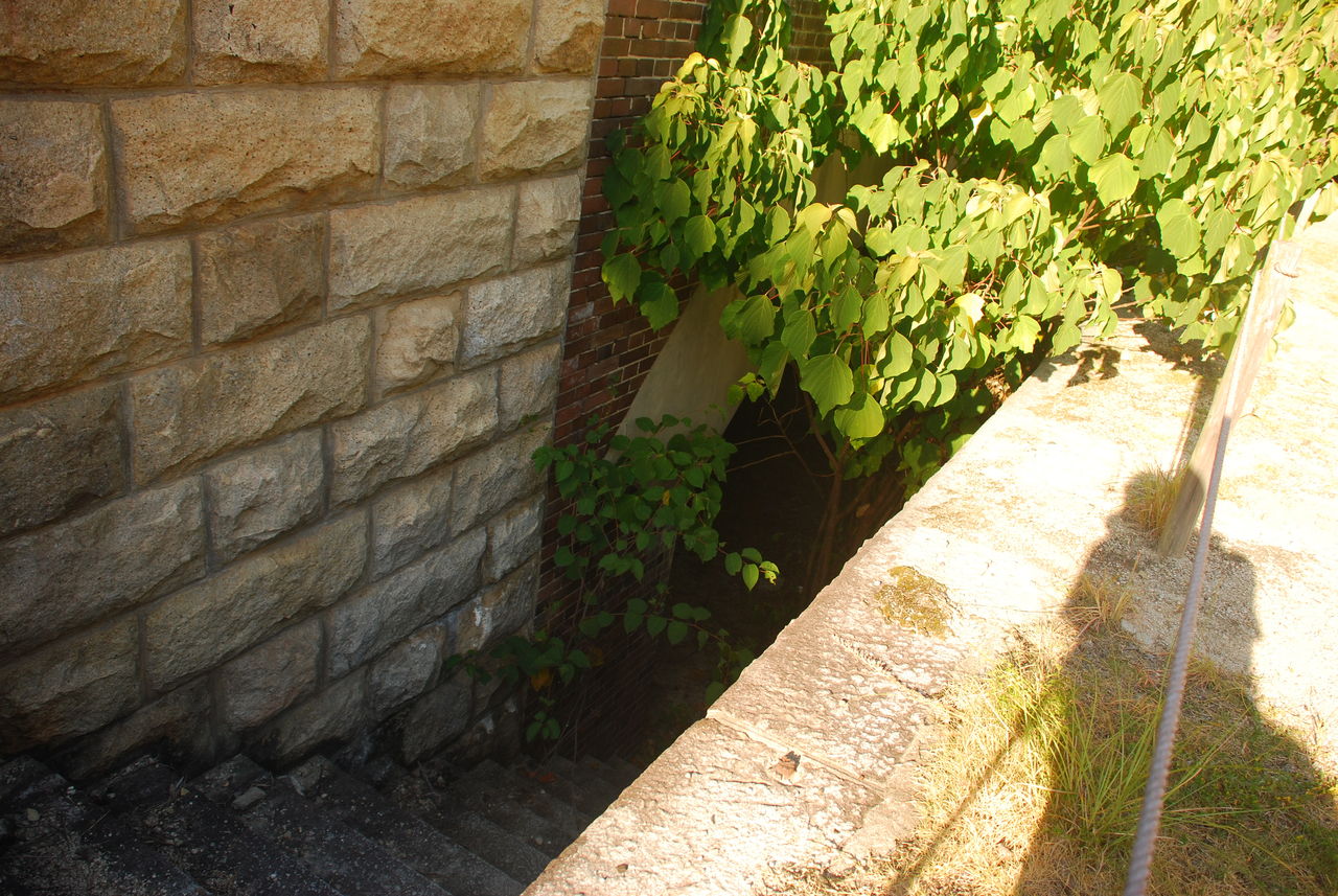 弾薬庫の入口は植物で覆われていた。
