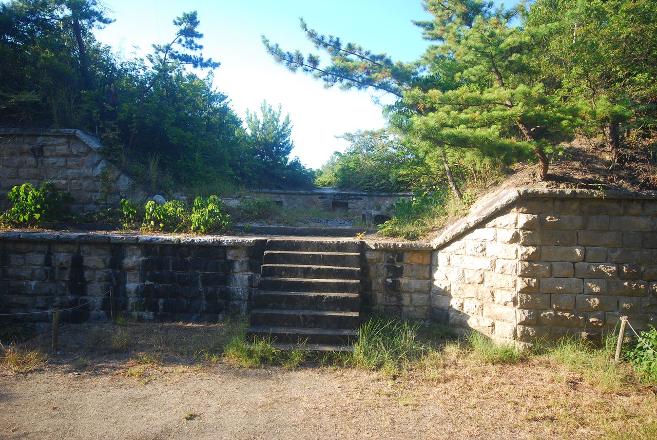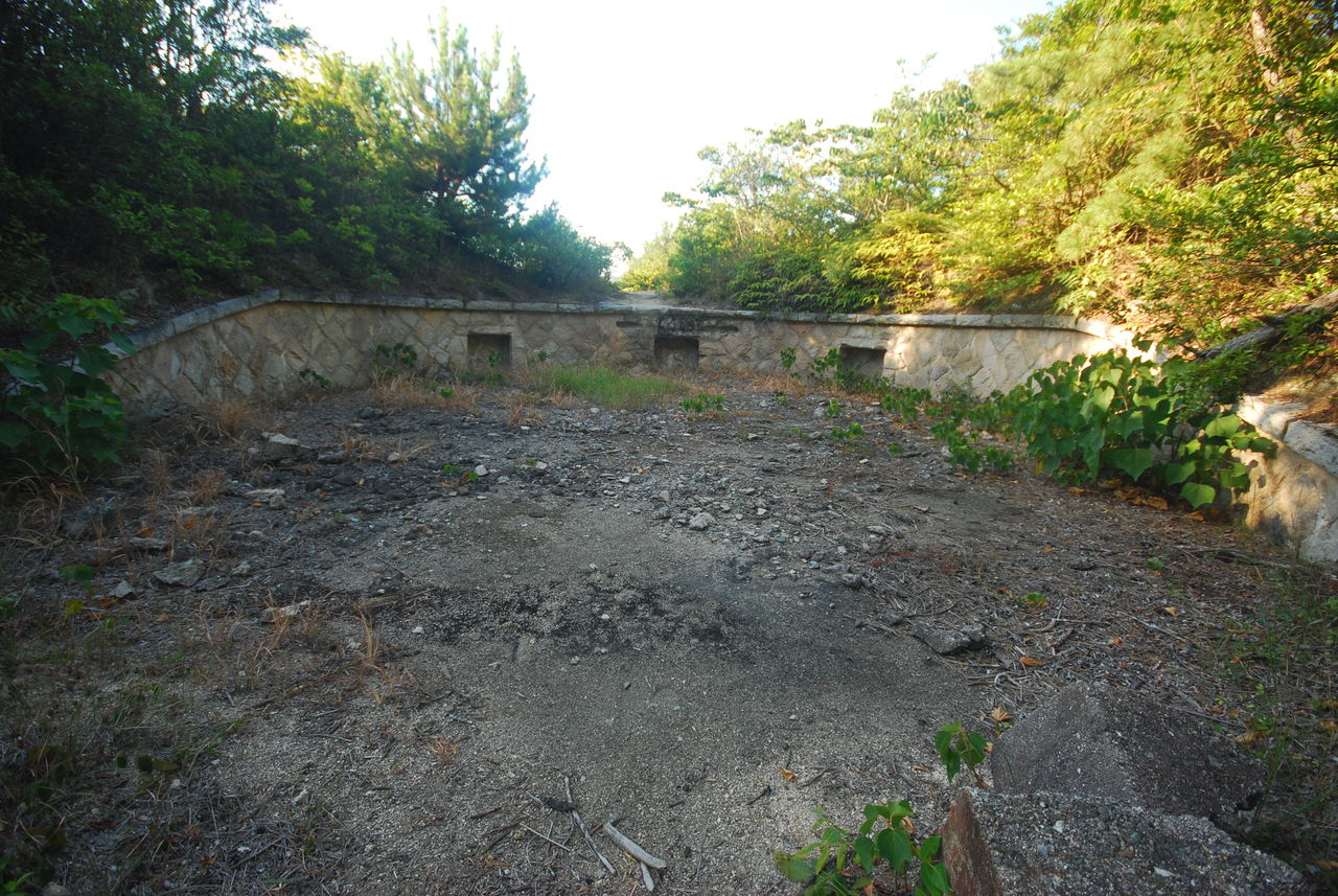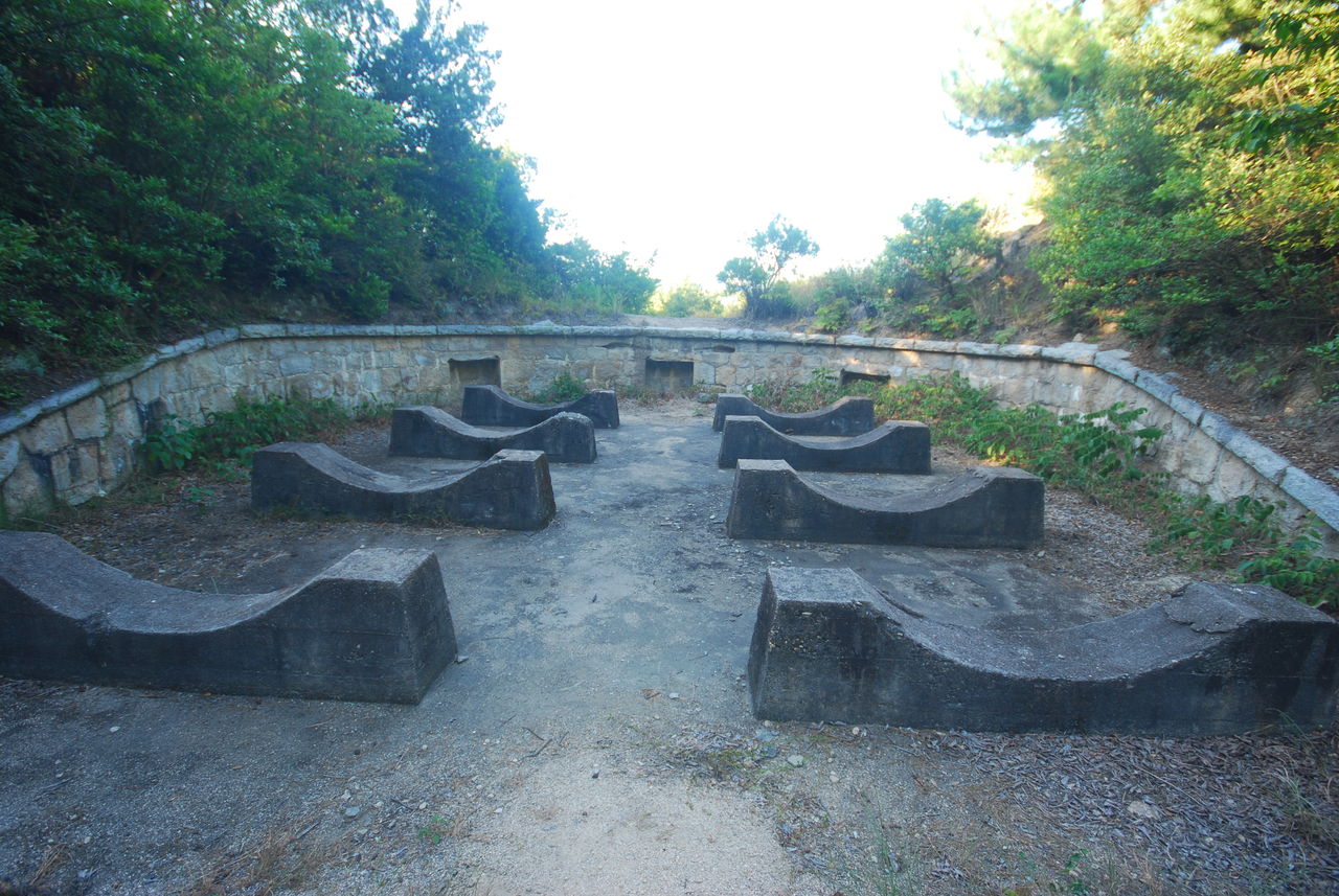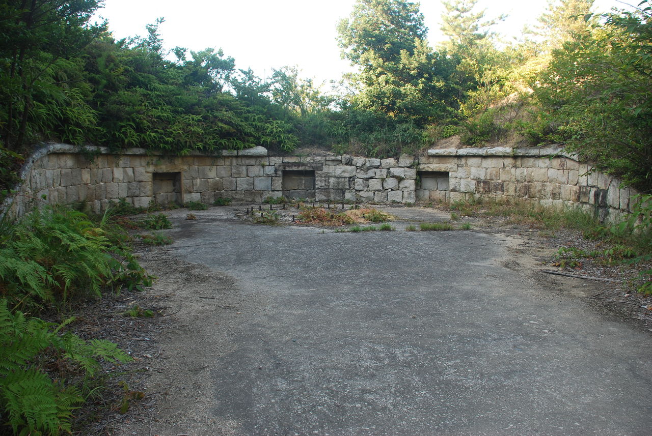 この砲台は島の中央にある山の山頂部にある。