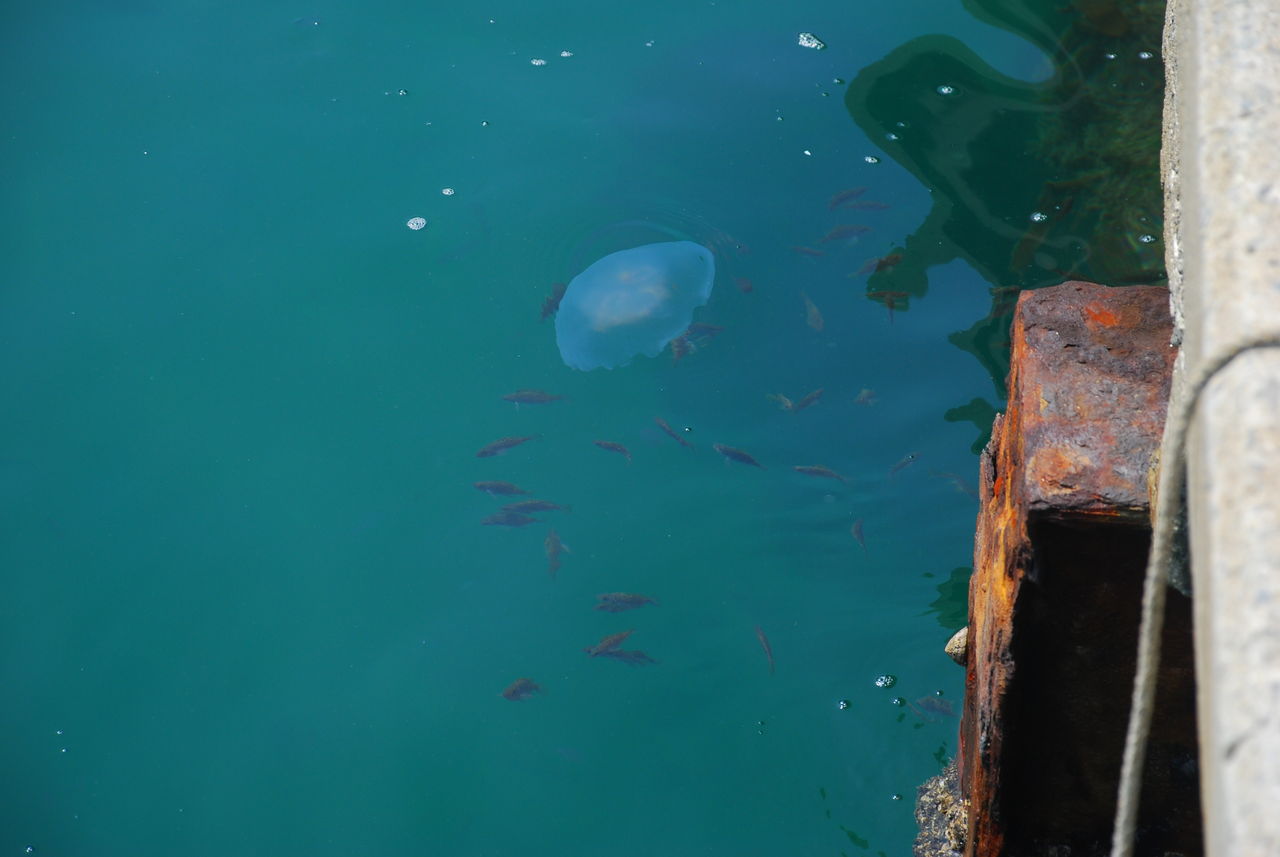 海を見ると魚とクラゲがたくさん。