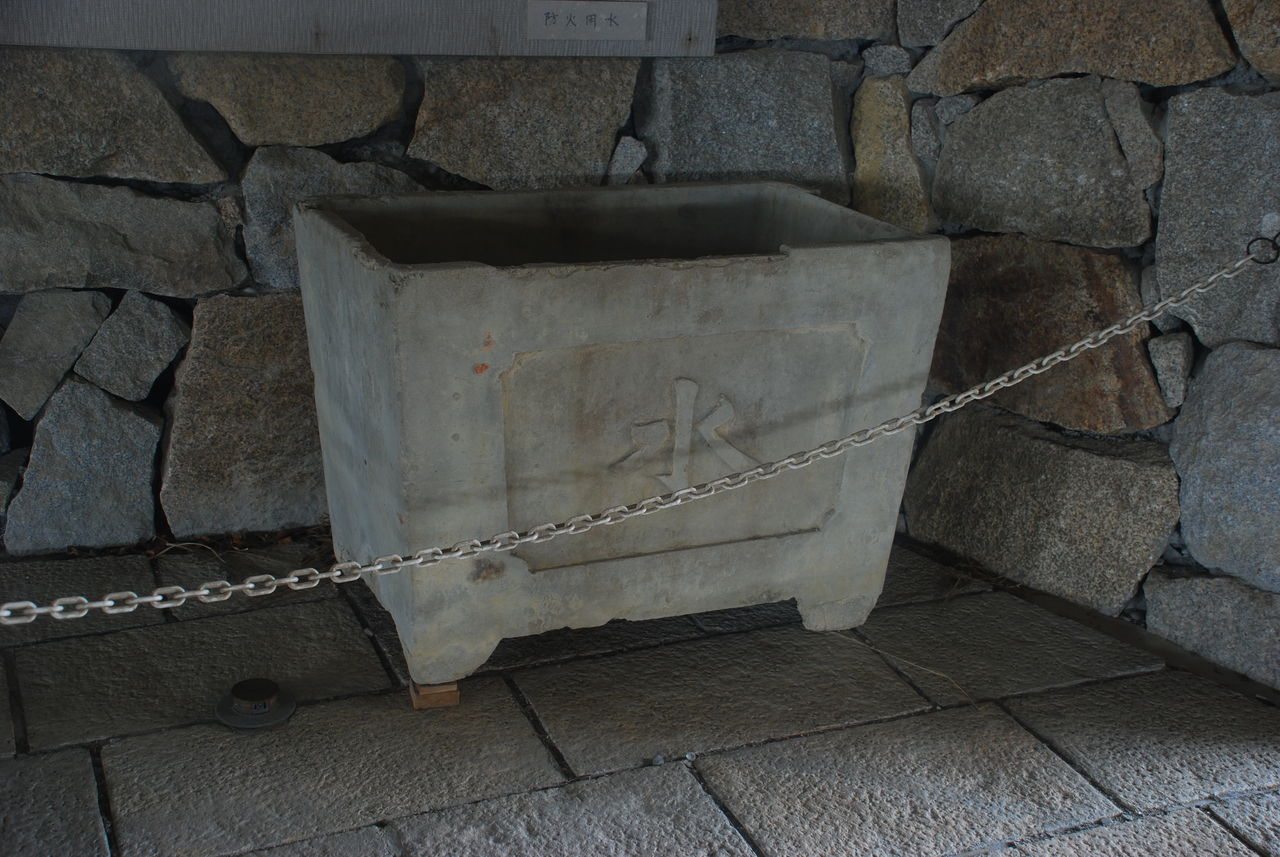 空襲で火災が起こったときに使う水を入れるもの。